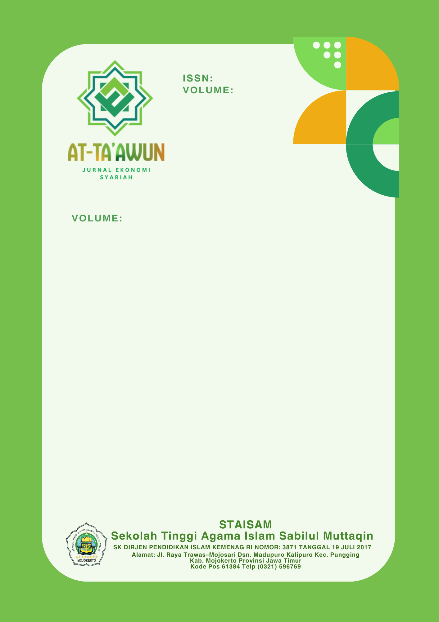At-Ta’awun: Jurnal Ekonomi Syariah [e-ISSN 3089-1086] merupakan jurnal ilmiah yang diterbitkan oleh Program Studi Ekonomi Syariah, Sekolah Tinggi Agama Islam (STAI) Sabilul Muttaqin Mojokerto. Jurnal ini terbit dua kali dalam satu tahun, yaitu pada bulan Mei dan November, serta menerapkan proses peer-review dalam setiap naskah yang diterbitkan.